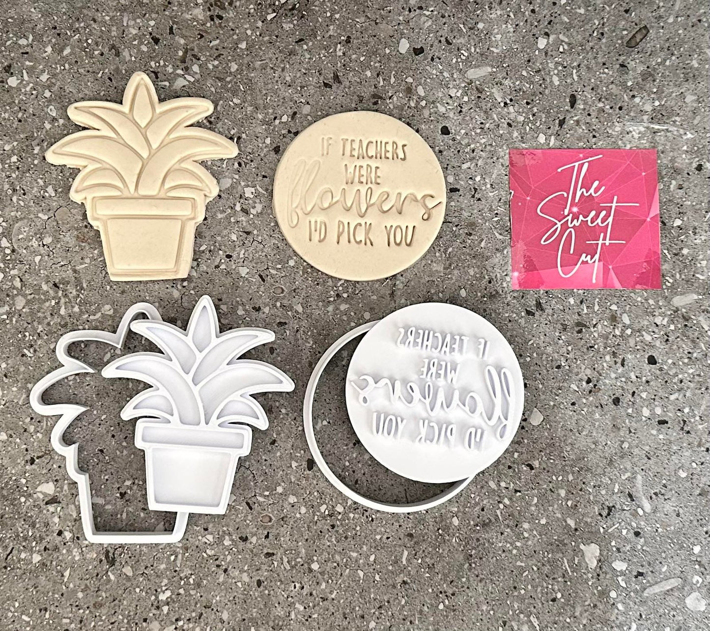 All stamps are made from food grade PLA+ material. The colour of the stamp/cutter depends on what is available at the time, however most are typically supplied in white